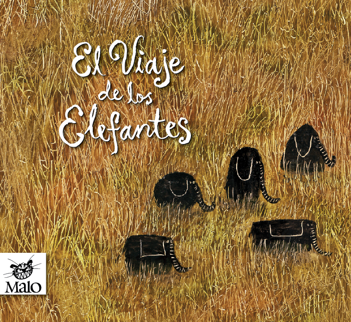 Aquí, imagen y palabra trabajan juntos para crear una metáfora que une vida, amor y viaje. Cinco elefantes salen en busca del lugar ideal. En el camino, se encuentran con algunos tropiezos. Los trazos infantiles de la ilustración están llenos de sorpresas
